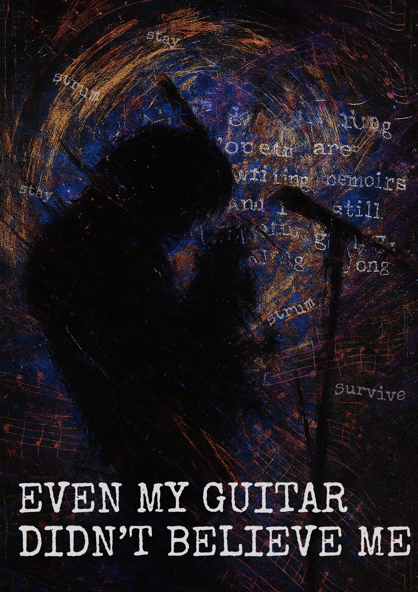 Then he saw the notebook, half buried, open to a line he didn’t remember writing. Unfinished, unpolished, but alive. The razor slipped from his fingers, clattering against wood- a small sound, but enough to break the air. His hand moved instead to the pen and then the guitar.